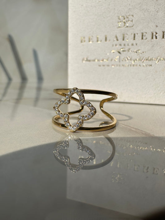 Il bangle Gigi con chiusura a scatto e farfalle incastonate di zirconi in acciaio inossidabile placcato oro 18 carati è l'accessorio perfetto per aggiungere un tocco di eleganza e raffinatezza a qualsiasi outfit. Lasciatevi conquistare dalla brillantezza degli zirconi e dalla lucentezza dell'oro per brillare con stile e raffinatezza.