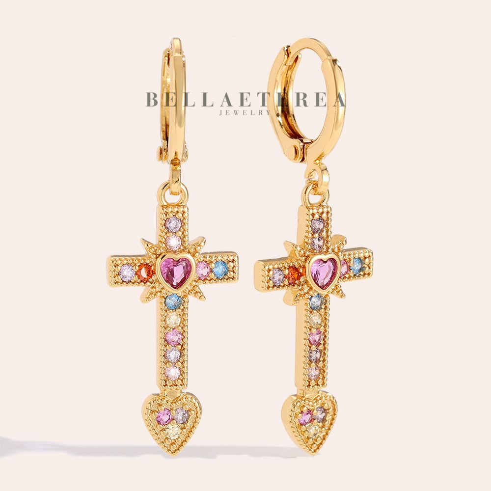 ✝️ Divine Love Earrings – Cross of Light, Hearts of Love