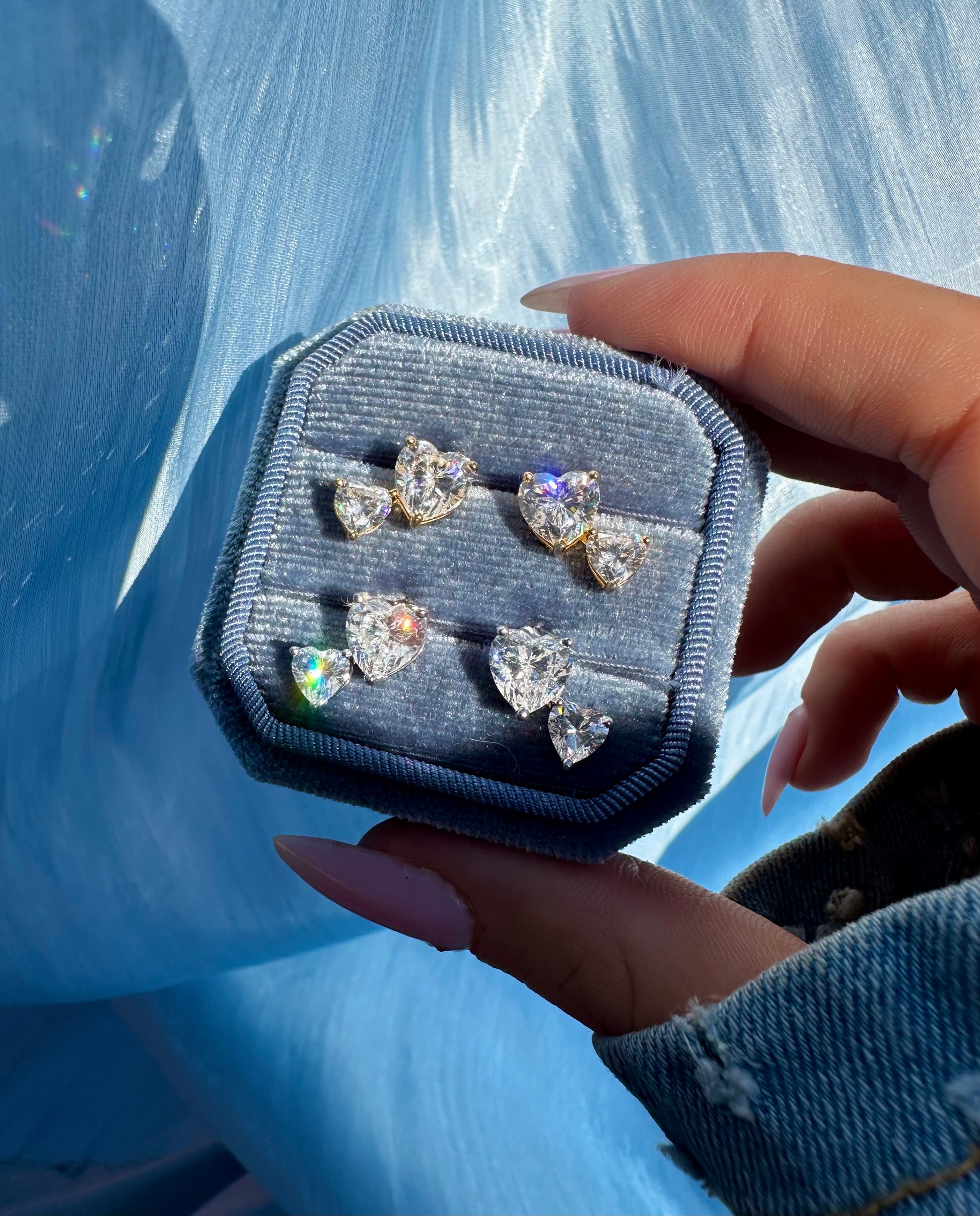 Crafted from 18k gold-plated 925 sterling silver (also available in rhodium-plated ), these asymmetrical stud earrings gracefully capture the light thanks to the high-quality 5A grade zirconia . The heart-cut main stone exudes intense brilliance, while the smaller heart adds a touch of movement and poetry.