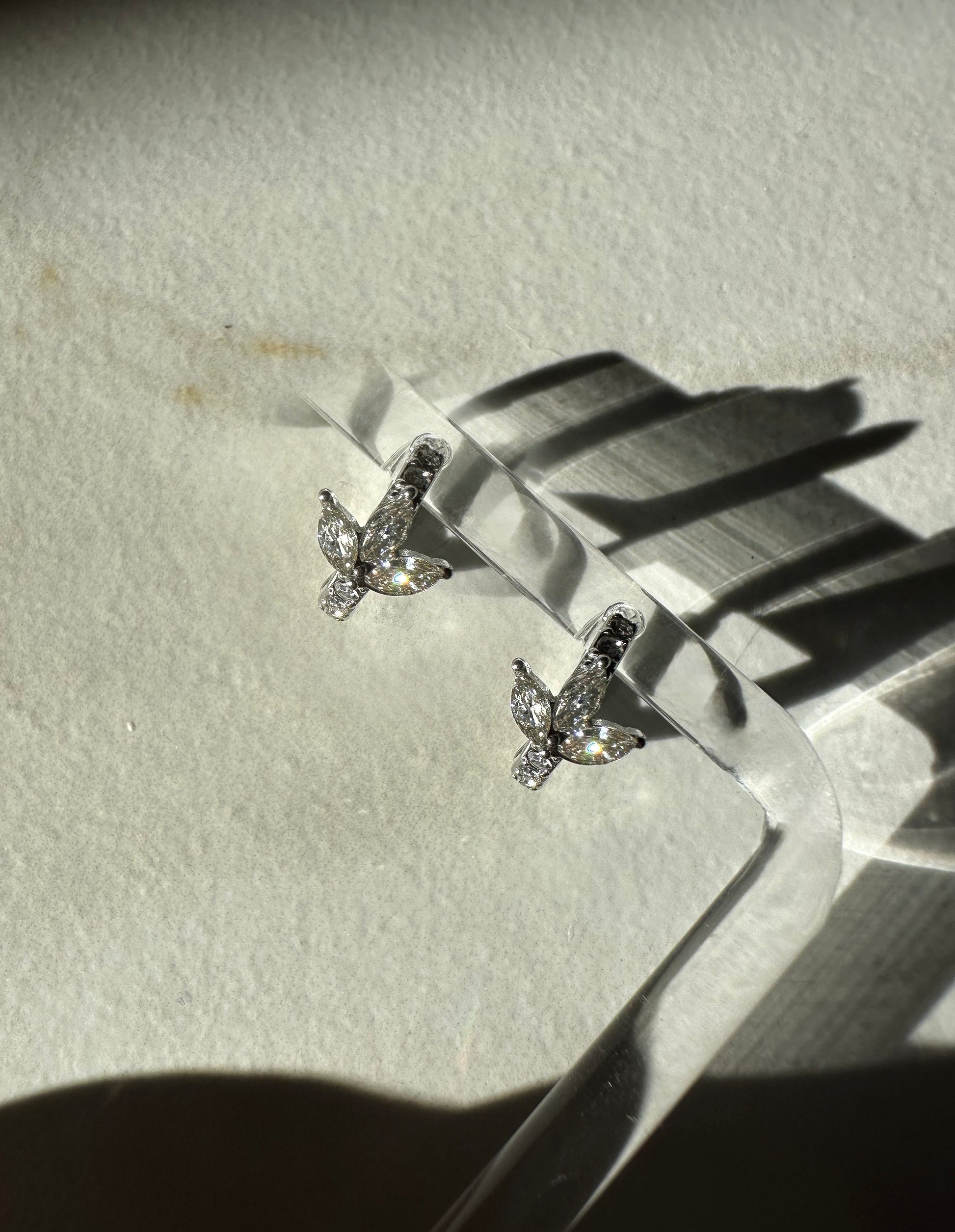 Refined and feminine, these hoop earrings feature a 3-petal flower at the center, set with marquise stones , and the hoop itself is embellished with cubic zirconia that catches the light with every movement.
