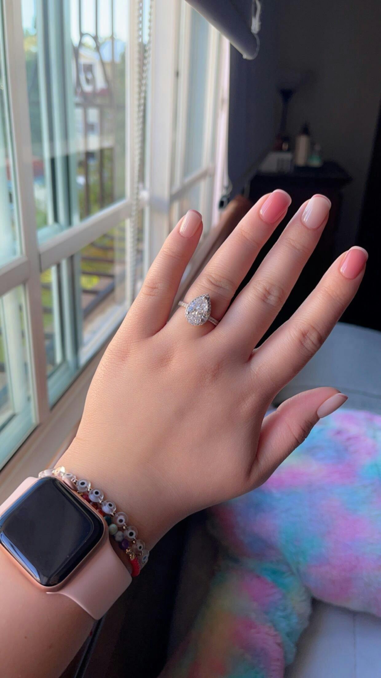 Questo straordinario anello a taglio pera è l'alternativa perfetta al diamante! La sua apparenza fisica è molto simile a quella della sua costosa "sorella" – il diamante. La luce viene raccolta e riflessa in questo anello, rendendolo incredibilmente scintillante! Questo gioiello rappresenta la fusione perfetta tra sofisticazione e brillantezza, con una qualità di pietre che garantisce un effetto scintillante e un design che non passa mai di moda.